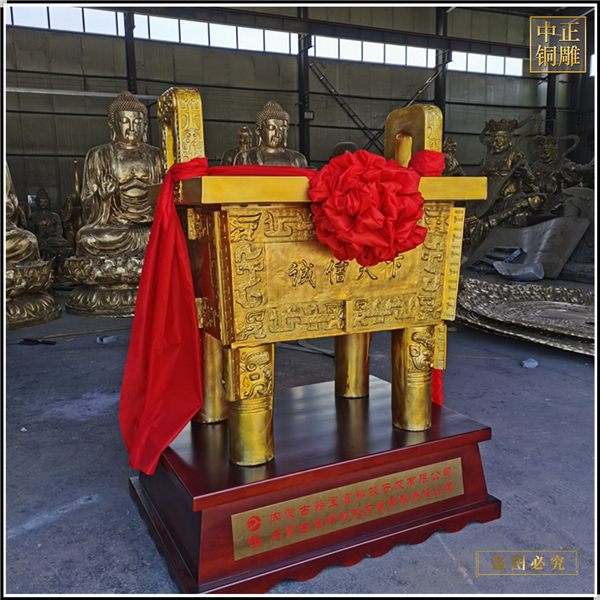 中正銅雕-方鼎鑄造廠、方鼎鑄造廠家、方鼎鑄造廠加工,我公司集科研、開發設計、普通鑄造、一次性整體澆鑄、精密鑄造于一體。本公司技術力量雄厚,設備,不但重視中國青銅器原有的藝術風格,還繼承了文物原有的藝術品味,在繼承和發揚古老文化的同時,更深一步為新老客戶定身量制各種銅制、鐵制工藝品等產品,曾多次受到寺廟長老和美術學院教授的好評。