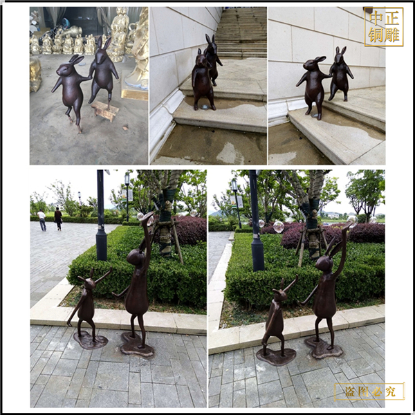 中正銅雕-手拉手小兔子銅雕塑、手拉手小兔子銅雕塑價格、手拉手小兔子銅雕塑廠家,我公司集科研、開發設計、普通鑄造、一次性整體澆鑄、精密鑄造于一體。本公司技術力量雄厚,設備,不但重視中國青銅器原有的藝術風格,還繼承了文物原有的藝術品味,在繼承和發揚古老文化的同時,更深一步為新老客戶定身量制各種銅制、鐵制工藝品等產品,曾多次受到寺廟長老和美術學院教授的好評。
