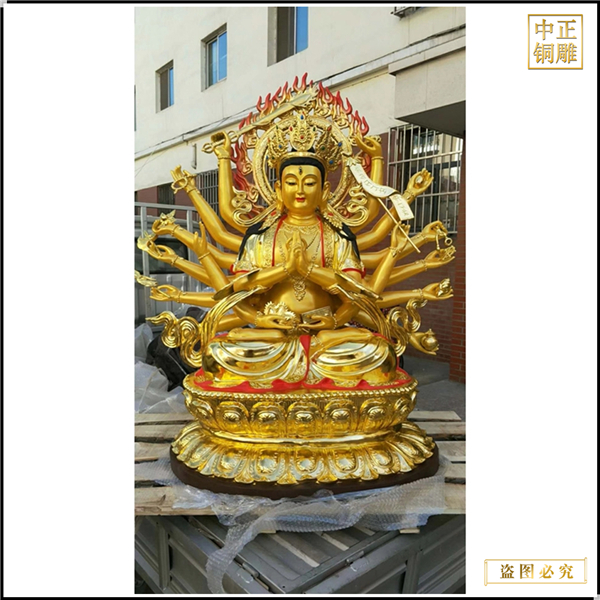 中正銅雕-彩繪千手觀音菩薩銅像、彩繪千手觀音菩薩銅像價格、彩繪千手觀音菩薩銅像廠家,我公司實行現代化企業管理,成功導入TPS生產管理系統,形成集塑制泥塑模型、泥稿后翻制模具、翻制石膏模型、工藝師加工制作、營銷為一體化作業的生產線,加上先進的銅雕加工設備,優秀的美術設計師,雕刻經驗豐富的制作人員, 造型精美,精雕細琢,深受客戶的好評。