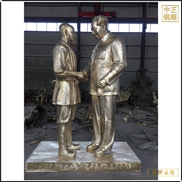 中正銅雕-名人握手銅雕塑 大型名人握手銅雕塑廠家 名人握手銅雕塑擺件制作,我公司集科研、開發(fā)設(shè)計、普通鑄造、一次性整體澆鑄、精密鑄造于一體。本公司技術(shù)力量雄厚,設(shè)備,不但重視中國青銅器原有的藝術(shù)風(fēng)格,還繼承了文物原有的藝術(shù)品味,在繼承和發(fā)揚古老文化的同時,更深一步為新老客戶定身量制各種銅制、鐵制工藝品等產(chǎn)品。