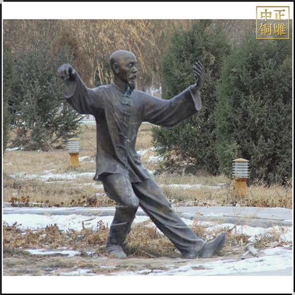 中正銅雕-室外景觀練太極人物銅雕塑、室外景觀練太極人物銅雕塑價格、室外景觀練太極人物銅雕塑廠家,我公司集科研、開發設計、普通鑄造、一次性整體澆鑄、精密鑄造于一體。本公司技術力量雄厚,設備,不但重視中國青銅器原有的藝術風格,還繼承了文物原有的藝術品味,在繼承和發揚古老文化的同時,更深一步為新老客戶定身量制各種銅制、鐵制工藝品等產品,曾多次受到寺廟長老和美術學院教授的好評。