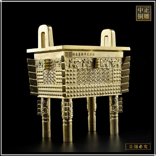 中正銅雕-落地式開業禮品大銅鼎擺件、落地式開業禮品大銅鼎擺件價格、落地式開業禮品大銅鼎擺件廠家,本公司打造了一支強有力的管理隊伍和創新團隊,在國內同行中成為佼佼者。加強與國內知名專家的合作,提升公司的實力,打造公司文化品牌,提升公司的品牌價值及創造力,為社會創作更多有品位的雕塑作品。無論從黃銅鑄造,錫青銅鑄造都能熟練掌握其材料比例和配方。能使鑄件抗氧化,防腐蝕性,防酸,防堿及使鑄件外力沖擊而不折,能熟練鑄造銅鐘,銅鼎,編鐘,銅鼓等高難度的產品。