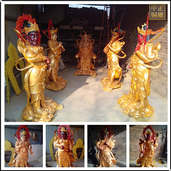 四大天王銅佛像是二十諸天中的四位天神銅像,它們所在的第一重天叫做四天王天,它們在寺廟的第一重殿的兩側(cè),被稱為天王殿,四大天王自身的顏色都是不一樣的,所在在制作四大天王銅佛像的時(shí)候,通常都是彩繪的,這樣可以有利于人們對四大天王的區(qū)分,但是如果你了解四大天王,那么即使是鍍金的、青銅的、紫銅的四大天王銅佛像,也是可以區(qū)分的非常清楚的。