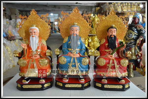 三清銅像分別是玉清元始天尊、上清靈寶天尊、太清道德天尊,總稱為“虛無(wú)自然大羅三清三境三寶天尊”,是道教神像的最高神,在道家文化中,這三清尊神開(kāi)天辟地,傳道授法,乃當(dāng)之無(wú)愧的道教最高神。