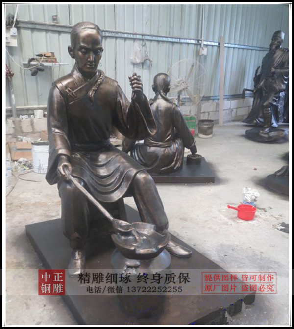古代人物雕塑是人物雕塑中重要的一種,我廠通過對肖像的準確表現(xiàn),把古代人物雕塑形體展現(xiàn),比如銅關公像,通過這一古代人物雕塑展示了關羽的忠勇形象。張仲景、華佗雕塑等等,都是通過雕塑的技法,展示出古人的風姿。