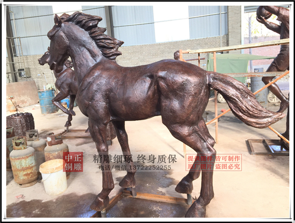 銅馬廠家雕刻出的馬,雄壯無比,力大無窮,追月逐日,披星跨斗,乘風(fēng)御雨,不舍晝夜。這正是中華民族戰(zhàn)天斗地,征服自然的生動寫照,是炎黃子孫克服困難,永遠(yuǎn)前進(jìn),是中國人民不畏艱險(xiǎn),樂觀向上的生命意義的反映。所以其一般擺放在企業(yè)門口既有拼搏向上的精神,也有招賢納才的寓意!