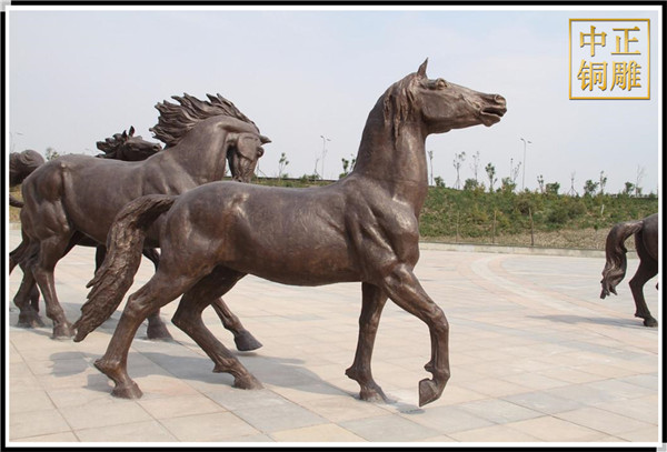 而雕刻出的馬,雄壯無比,力大無窮,追月逐日,披星跨斗,乘風(fēng)御雨,不舍晝夜。這正是中華民族戰(zhàn)天斗地,征服自然的生動寫照,是炎黃子孫克服困難,永遠(yuǎn)前進(jìn),是中國人民不畏艱險,樂觀向上的生命意義的反映。所以銅馬一般擺放在企業(yè)門口既有拼搏向上的精神,也有招賢納才的寓意!