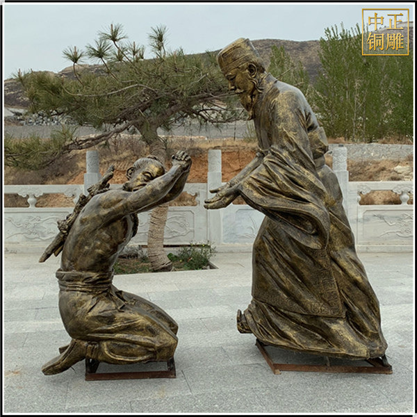中正銅雕-大型室外負荊請罪人物雕塑、大型室外負荊請罪人物雕塑價格、大型室外負荊請罪人物雕塑廠家,我公司集科研、開發設計、普通鑄造、一次性整體澆鑄、精密鑄造于一體。本公司技術力量雄厚,設備,不但重視中國青銅器原有的藝術風格,還繼承了文物原有的藝術品味,在繼承和發揚古老文化的同時,更深一步為新老客戶定身量制各種銅制、鐵制工藝品等產品,曾多次受到寺廟長老和美術學院教授的好評。