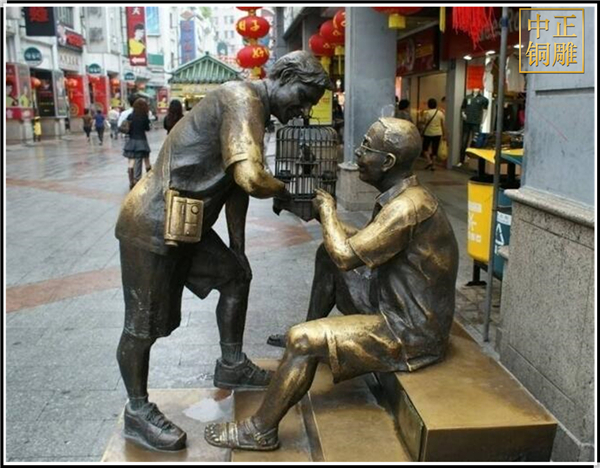人物雕塑是一種能夠反映出社會生活 表達藝術的形式,人物雕塑起源于工藝美術,因此大部分的人物銅雕都具有非常強的裝飾性和實用性,隨著人們的生活水平提高和觀念的轉變,中國也有很多城市開始建造屬于自己的情景人物雕塑。中正銅雕-逗鳥人物銅雕塑、逗鳥人物銅雕塑價格、逗鳥人物銅雕塑廠家,我公司實行現代化企業管理,成功導入TPS生產管理系統,形成集塑制泥塑模型、泥稿后翻制模具、翻制石膏模型、工藝師加工制作、營銷為一體化作業的生產線,加上先進的銅雕加工設備,優秀的美術設計師,雕刻經驗豐富的制作人員, 造型精美,精雕細琢,深受客戶的好評。
