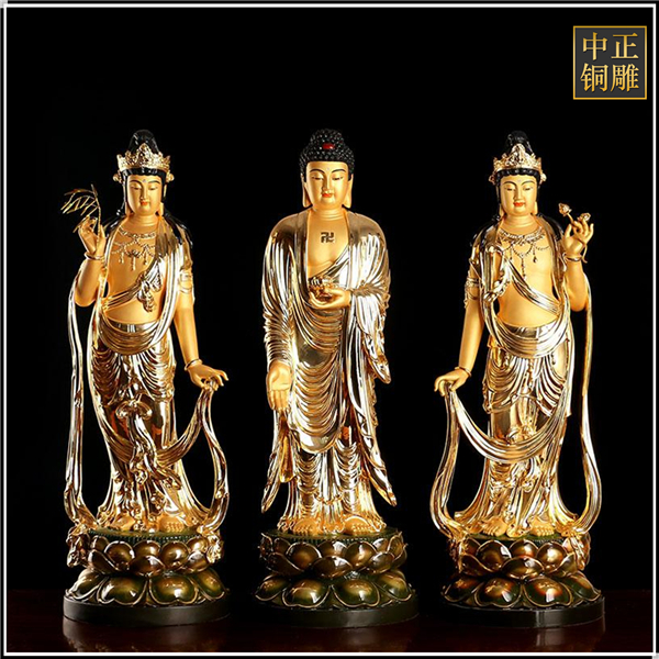 西方三圣又稱阿彌陀三尊,中間是阿彌陀佛,左邊大勢(shì)至菩薩,右邊為觀世音菩薩組成。西方三圣乃是凈土宗專修對(duì)象。 中正銅雕-西方三圣擺件、西方三圣擺件價(jià)格、西方三圣擺件廠家,我廠是一家專業(yè)生產(chǎn)人物雕塑的廠家,其質(zhì)量和品質(zhì)都非常可靠,有需要的客戶歡迎前來訂購。