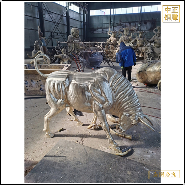 中正銅雕-大型鎏金銅牛雕塑、大型鎏金銅牛雕塑價格、大型鎏金銅牛雕塑廠家,我公司實行現代化企業管理,成功導入TPS生產管理系統,形成集塑制泥塑模型、泥稿后翻制模具、翻制石膏模型、工藝師加工制作、營銷為一體化作業的生產線,加上先進的銅雕加工設備,優秀的美術設計師,雕刻經驗豐富的制作人員, 造型精美,精雕細琢,深受客戶的好評。
