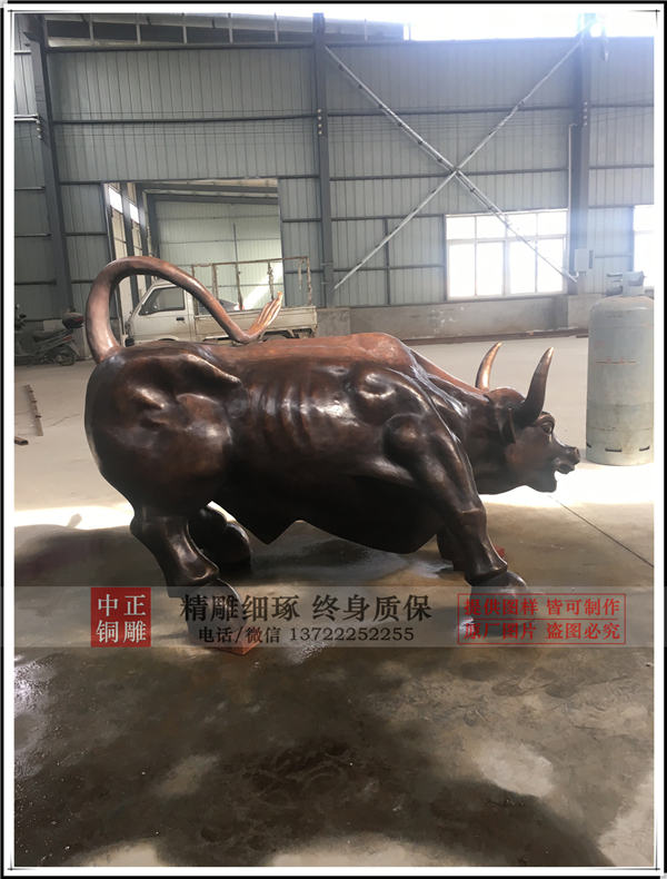 公牛拒信有強(qiáng)財(cái)旺運(yùn),特別是偏財(cái)運(yùn)的作用,特別是對于在正式工作之余,兼職做求財(cái)營生的人來說,對財(cái)運(yùn)尤其有莫大的助益。是炒股、房地產(chǎn)、金融、財(cái)經(jīng)及銀行等人士案頭的必備旺財(cái)之寶。銅牛四肢強(qiáng)健有力,霸氣凜然,蓄勢待發(fā),象征著做好一切迎接困難的準(zhǔn)備。防止家中即可鎮(zhèn)宅辟邪,防小人,保吉祥如意。中正銅雕-銅雕華爾街牛廠家,河北銅雕華爾街牛廠家,加工銅雕華爾街牛廠家,我廠就是通過嚴(yán)謹(jǐn)?shù)牧鞒虨轭櫩椭谱縻~雕工藝品的,而且我們有經(jīng)驗(yàn)豐富的制作團(tuán)隊(duì),做出的作品會(huì)是顧客的理想產(chǎn)品。中正銅雕以【質(zhì)量優(yōu)信譽(yù)可靠】的發(fā)展目標(biāo)迎接廣大客戶的到來。歡迎各商來圖來樣來電。
